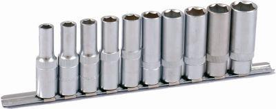 1/2" Stecknuss Satz auf Schiene 10-tlg. tiefe Nuesse