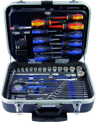 Werkzeugtrolley Set 130tlg Hochwertiges, universelles 6,3 [1/4"] + 12,5 [1/2"] Werkzeugsortiment mit allen wichtigen Werkzeugen Robuster ABS-Trolley mit einrastendem Teleskopgriff Ergonomisch durch Teleskopgriff und leicht laufenden Rollen Übersichtliche Anordnung der Werkzeuge Stabiler, bruchfester und abschließbarer ABS-Koffer 2 abschließbare Schlösser inkl. Schlüssel 2 klappbare Werkzeugtafeln mit EinsteckTaschen Werkzeuge gegen Herausfallen gesichert Integriertes RollensystemInhalt:12 Steckschlüssel-Einsätze 6,3 [1/4"] 4 4,5 5 5,5 6 7 8 9 10 11 12 13 mm2 Verlängerungen 6,3 [1/4"] 100 150 mm1 Umschaltknarre 6,3 [1/4"] 48 Zähne (8651) oder 72 Zähne (8652)1 Steckgriff 6,3 [1/4"]1 Kardangelenk 6,3 [1/4"]1 Steckschlüssel-Bit-Adapter für Schraubendreher-Einsätze / Bits 6,3 [1/4"] auf 6,3 [1/4"]3 Schraubendreher-Einsätze / Bits für Schlitz-Schrauben 6,3 [1/4"] 4,5 6,5 mm6 Schraubendreher-Einsätze / Bits für Kreuzschlitz-Schrauben PH 6,3 [1/4"] je 2 PH 1 2 36 Schraubendreher-Einsätze / Bits für Kreuzschlitz-Schrauben PZ 6,3 [1/4"] je 2 PZ 1 2 39 Schraubendreher-Einsätze / Bits für Innen-TX Schrauben mit stirnseitiger Bohrung 6,3 [1/4"] T 8 406 Schraubendreher-Einsätze / Bits für Innen-6-kant Schrauben 6,3 [1/4"] 3 8 mm1 Bit-Halter mit Schnellspannfutter magnetisch 6,3 [1/4"] 60 mm1 Mini Bit Ratsche 6,3 [1/4"]1 Bit-Schraubendreher magnetisch 6,3 [1/4"]16 Steckschlüssel-Einsätze 12,5 [1/2"] 10 32 mm2 Verlängerungen 12,5 [1/2"] 125 250 mm1 Umschaltknarre 12,5 [1/2"] 48 Zähne1 Kardangelenk 12,5 [1/2"]1 Gleitgriff 12,5 [1/2"]1 Teleskop-Magnetheber1 Maßband 5 m1 Winkelstiftschlüssel-Satz für Innen-6-kant Schrauben mit Kugelkopf lange Form 1,5 2 2,5 3 4 5 6 8 10 mm 9-tlg.1 Winkelstiftschlüssel-Satz für Innen-TX Schrauben lange Form T 10 50 9-tlg.12 Ringgabelschlüssel 8 22 mm1 Telefon-/Radio-/Flachrundzange 200 mm1 Kombizange 185 mm1 Wasserpumpenzange 245 mm1 Seitenschneider 160 mm1 Flechterzange 250 mm2 Schraubendreher für Schlitz-Schrauben 4- 8 mm2 Schraubendreher für Kreuzschlitz-Schrauben PH 1 – 22 Schraubendreher für Kreuzschlitz-Schrauben PZ 1 21 Spannungsprüfer 110 250 V1 VDE Schraubendreher für Schlitz-Schrauben 3 mm2 VDE Schraubendreher für Kreuzschlitz-Schrauben PH PH 1 21 Universalmesser1 Schlosserhammer 300 g1 Metallbügelsäge 260 mm1 Messschieber 0 150 mm1 Aluminium-Wasserwaage 400 mm1 Schlag und Meißelsatz 5-tlg. Splintentreiber 4 mm Durchschlag 3 mm Körner Kreuzmeißel 5 x 130 mm Flachmeißel 8-kant 12 x 130 mm (3370)1 Rollgabelschlüssel 250 mm / 10"